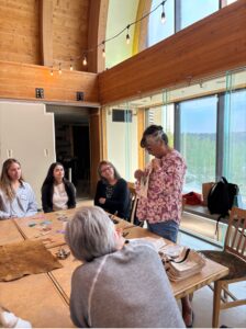 From June 2–6, 2025, the ICHR hosted a student orientation in Yellowknife for two new ICHR summer students, six PhD students from the University of Alberta, and three summer students working with the Chief Public Health Officer in the Northwest Territories. The week included teachings with Elders, a tour of the Legislative Assembly, ice breakers, and a beading workshop with Gwich’in Knowledge Holder Denise McDonald.